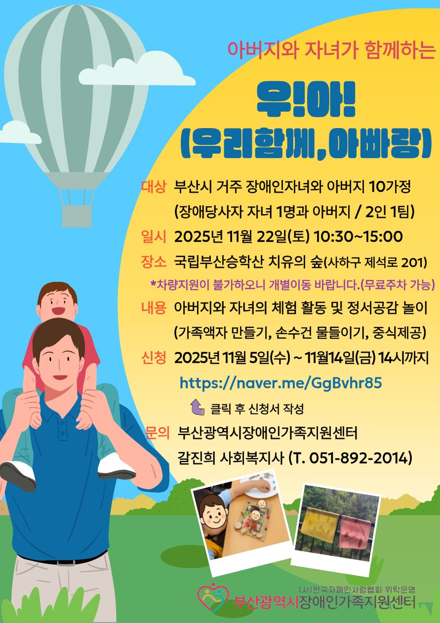 🌳대상 : 부산시 거주 장애인자녀와 아버지 10가정